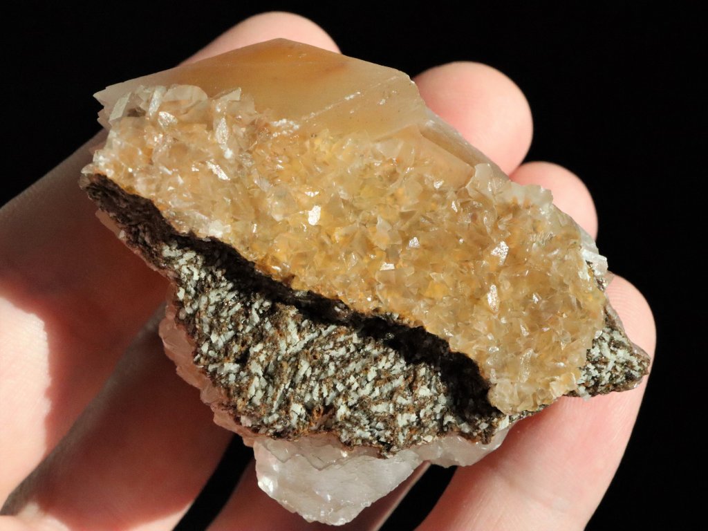 Sbírkový vzorek přírodního kalcitu pocházející ze slavné šutrácké lokality Černý důl v Krkonoších.