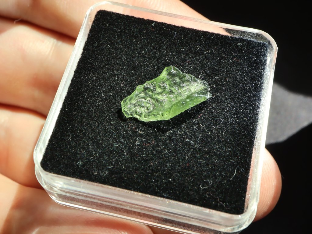 Vltavín obdržíte v kvalitní (hodnotné) uzaviratelné průhledné plastové krabičce s polstrovaným (černým nebo bílým) vnitřkem - viz. foto. Kamínek se vám tak nejen nikam nezatoulá, ale zároveň se jím budete moci přes průhledné plastové víčko krabičky i skvěle kochat.