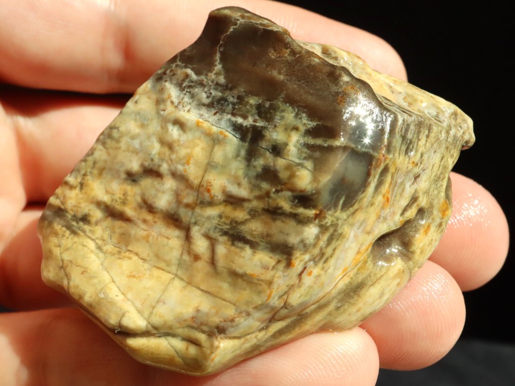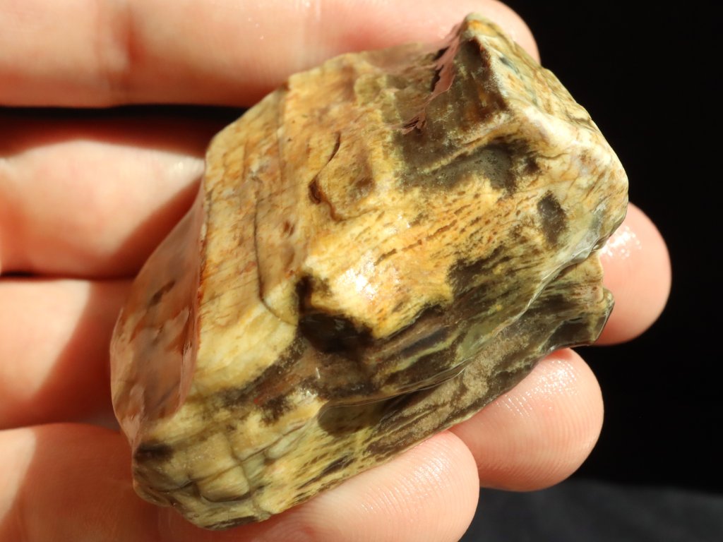Jde o krásnou ukázku zkamenělého dřeva, které má matný lehce až sametově ohlazený / omletý povrch příjemný na dotek.